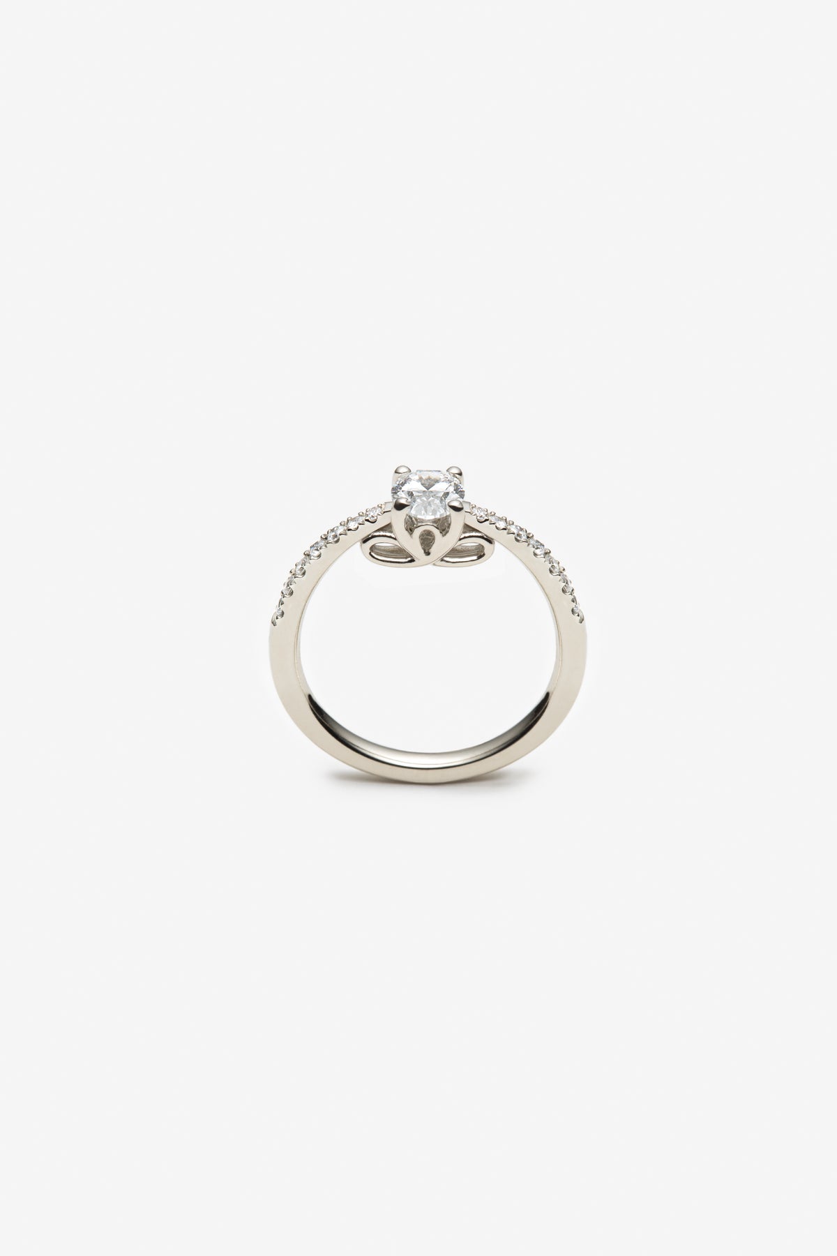 Bague Boucle solitaire semi éternité diamants ovale 0.5 créés 18k
